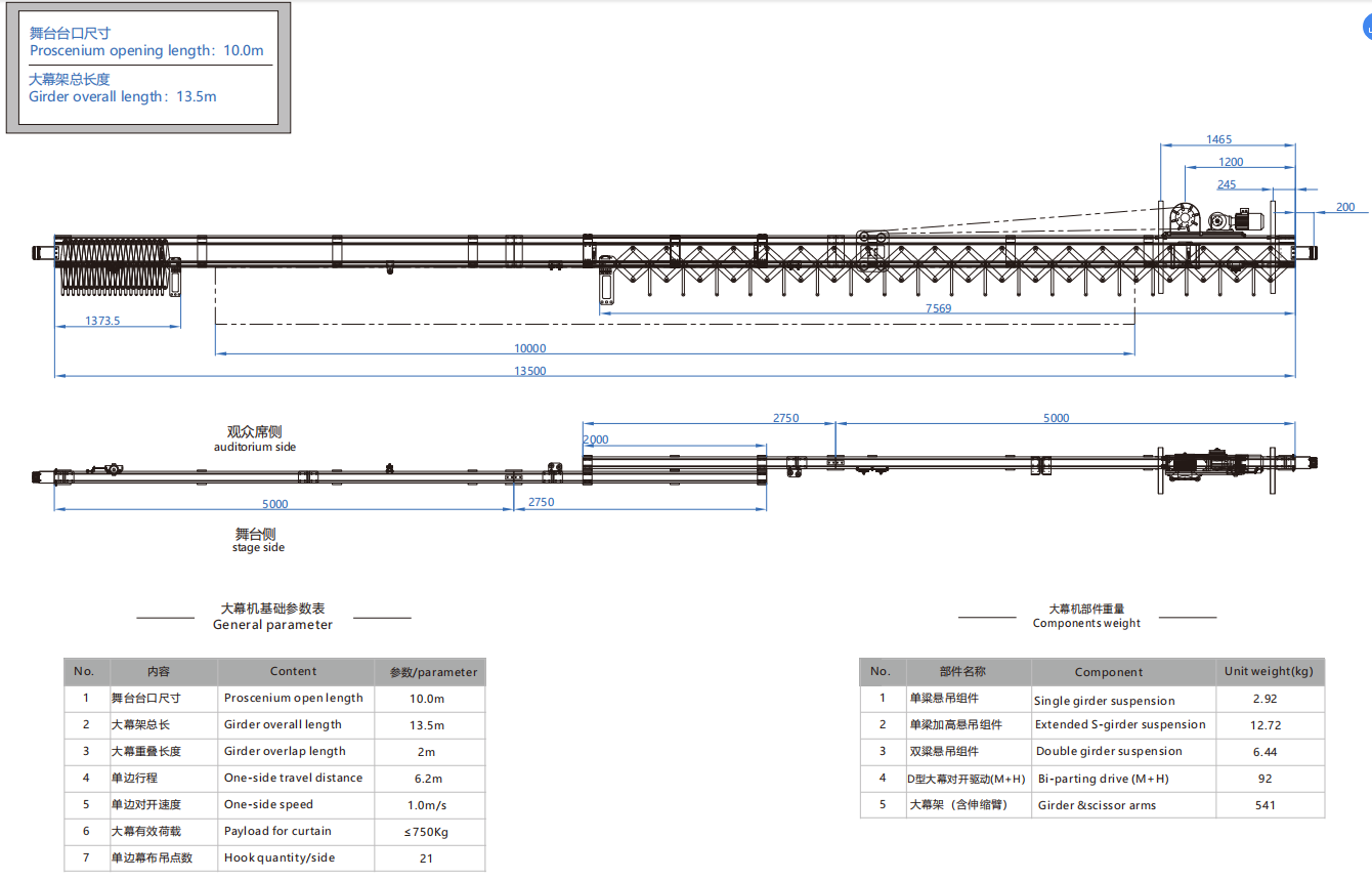 大幕机选型图 10.0m/13.5m