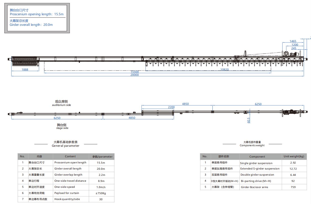 大幕机选型图 15.5m/20.0m
